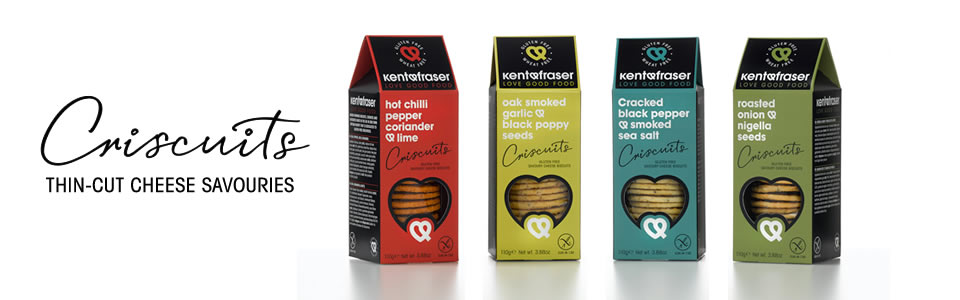 A delicious new range of mouth-watering, tastebud-tingling savouries from Kent & Fraser. The perfect cross between a cracker and a biscuit, Criscuits are made from all-natural ingredients for true flavour, and are gluten, wheat, egg and GMO free.
